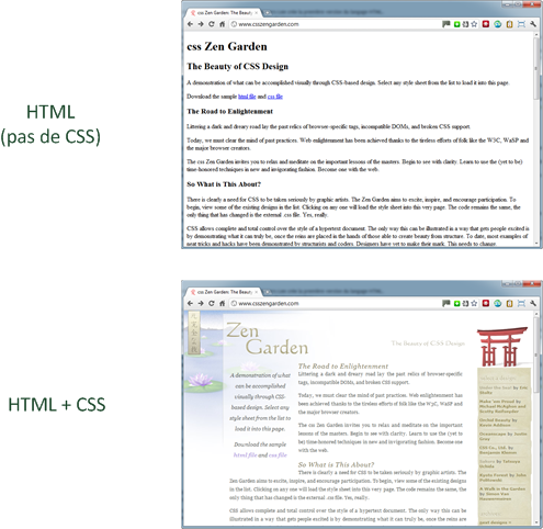CSS : Cascading Style Sheets. Ce langage, apparu en 1996, permet de gérer la mise en page du code html : couleur, position, décorations, ...