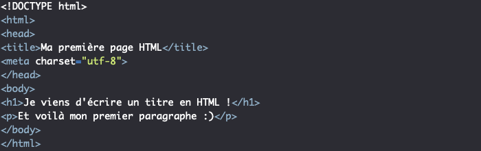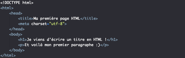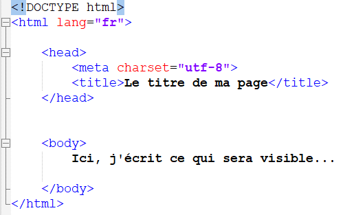 Le langage HTML utilise ce qu'on appelle des balises. On les écrit entre chevrons