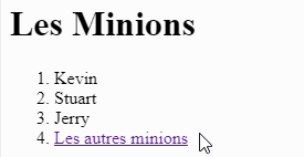 4.6. Sur la page index.html, ajoutez une ancre et un lien pour accéder au paragraphe "Les autres minions", comme ci-dessous :